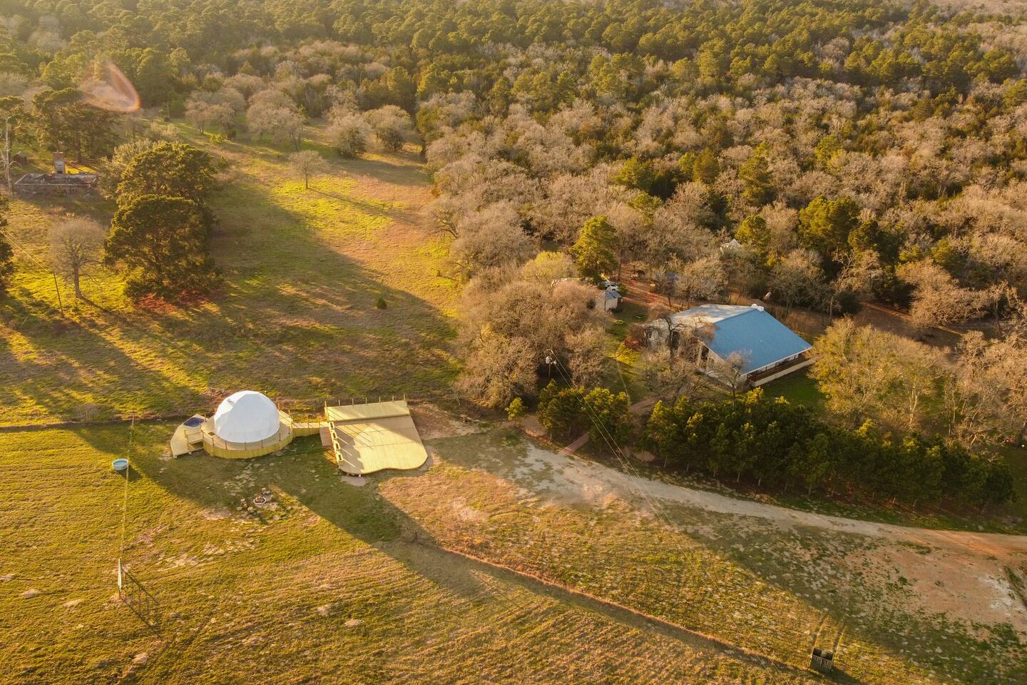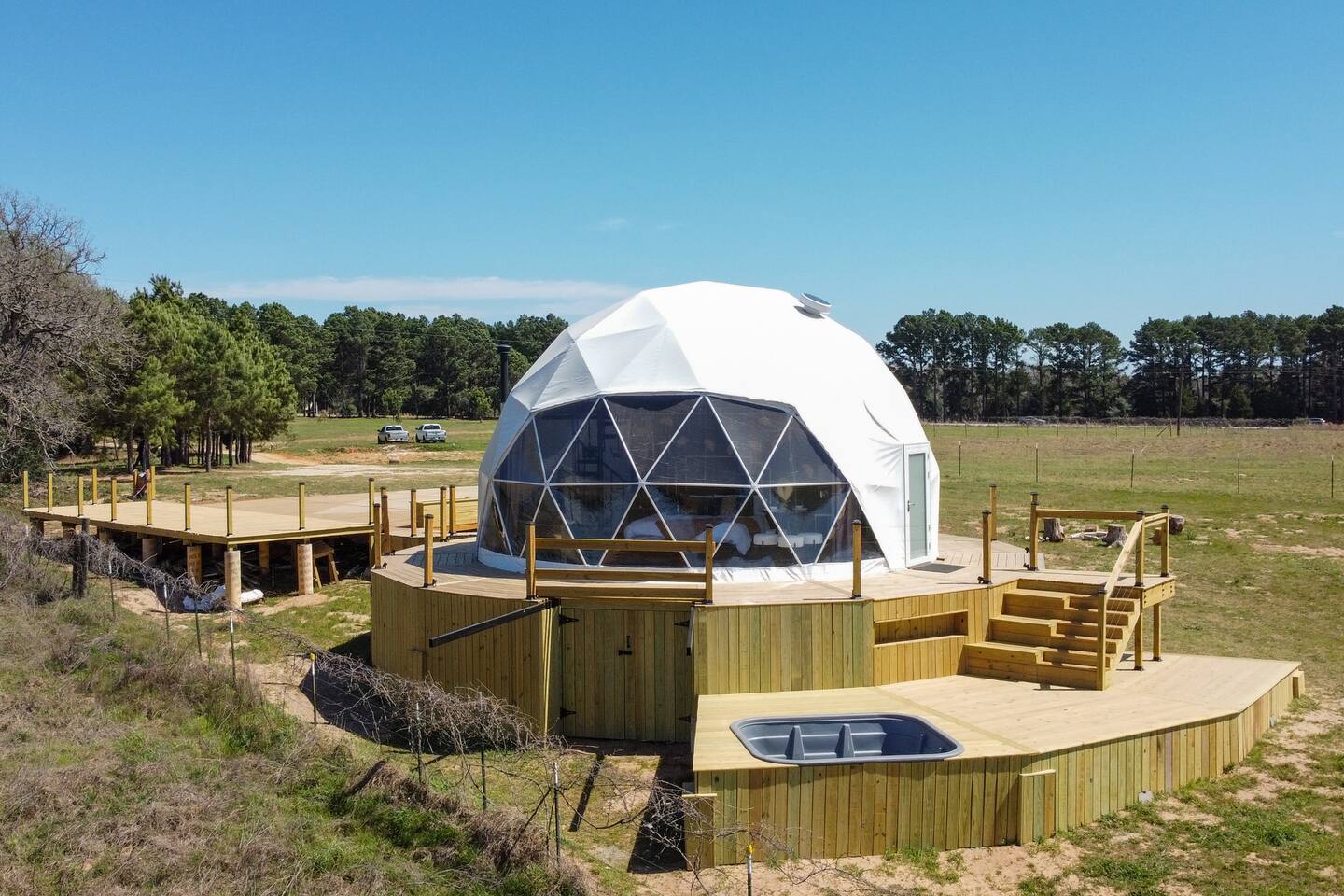 Welcome to the Golden Dome, a luxurious geodesic retreat that accommodates up to 6 guests. You'll love this unique and romantic escape! Set on 25 acres of stunning pine and cedar trees between Bastrop and Smithville, Texas, Golden Pine offers the perfect mix of nature and modern comfort. With breathtaking sunset views, a cozy yet spacious dome, and peaceful seclusion, this retreat is ideal for a relaxing getaway. Free WiFi and parking are included.