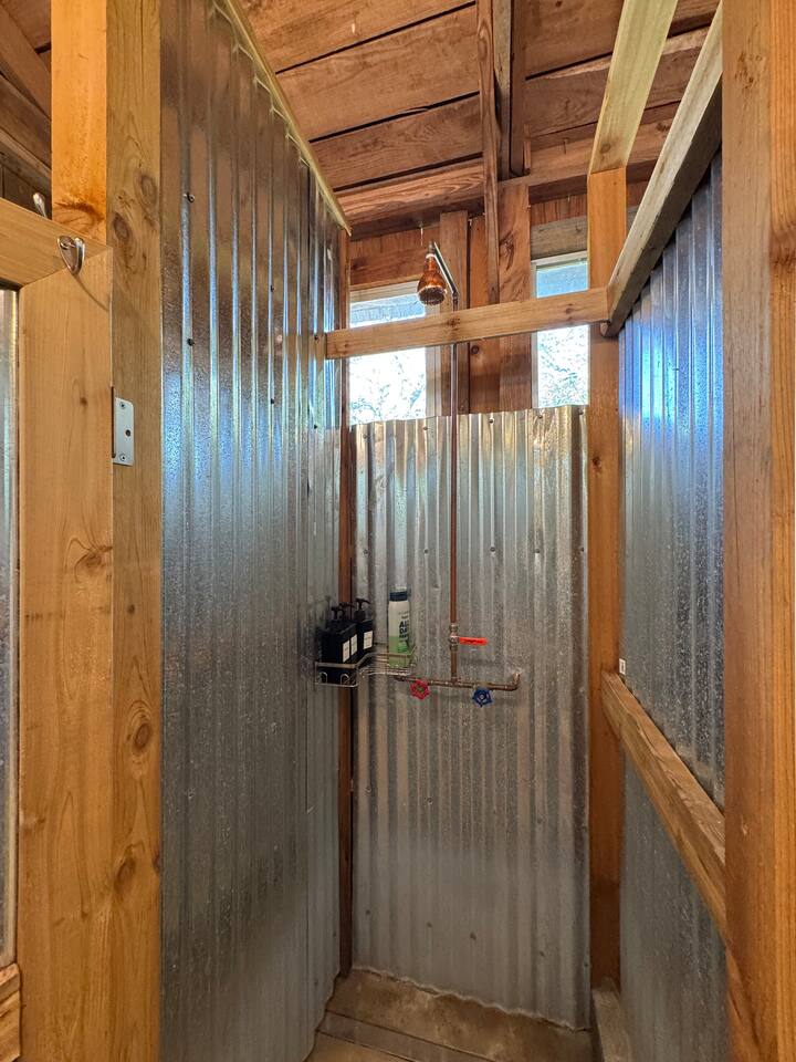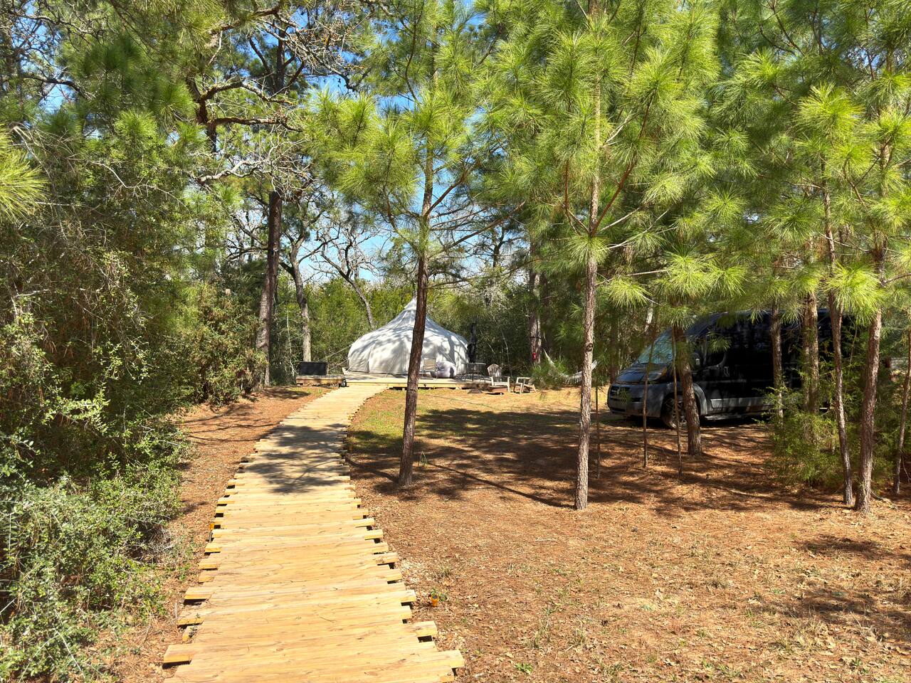 Stay in a 20' glamping tent surrounded by pine and cedar trees. It includes a queen bed, two sofas that sleep one each, with extra beds available for $20 each per bed. The tent has AC, a small fridge, free Wi-Fi, and access to a communal bathroom and shower. Free parking is on-site. 🔥Please enjoy our new hot tub and sauna! Other structures are on the property, so you may encounter other guests during your stay. Cattle and horses roam our adjacent fenced lot so come say hi!